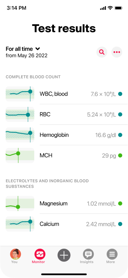 Quickly reference and compare biomarker values.